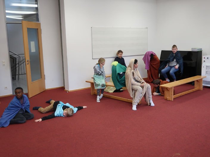 Während morgens alters- und klassengemischt gearbeitet wurde, kommen am Donnerstag-Abend die einzelnen Klassen zusätzlich zu einem Lese-Abend in ihre Klassen. Im nächsten Jahr planen wir dann wieder wie früher eine richtige Lese-Nacht mit Übernachtung in der Schule.