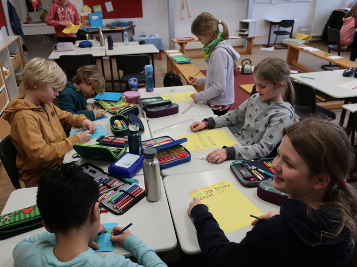 Während morgens alters- und klassengemischt gearbeitet wurde, kommen am Donnerstag-Abend die einzelnen Klassen zusätzlich zu einem Lese-Abend in ihre Klassen. Im nächsten Jahr planen wir dann wieder wie früher eine richtige Lese-Nacht mit Übernachtung in der Schule.