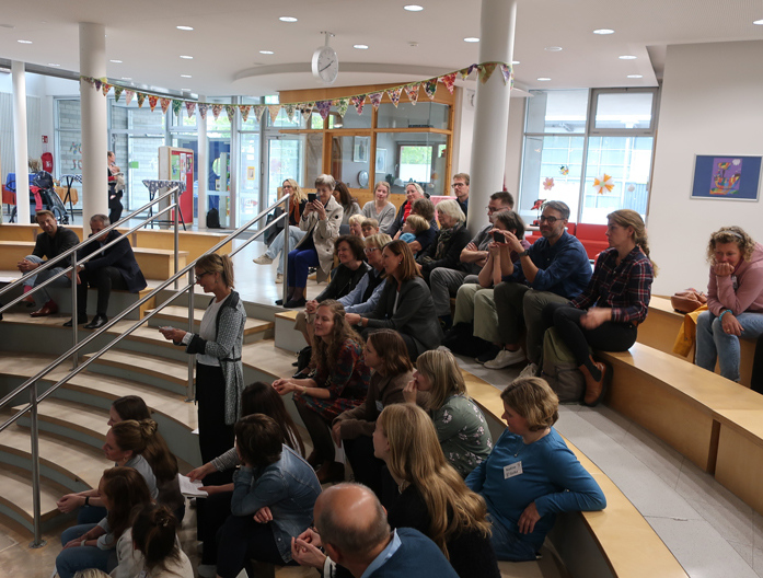 Die Verabschiedung fand in zwei Teilen statt, jeweils lebendig und charmant moderiert von Frau Süs, der Konrektorin.