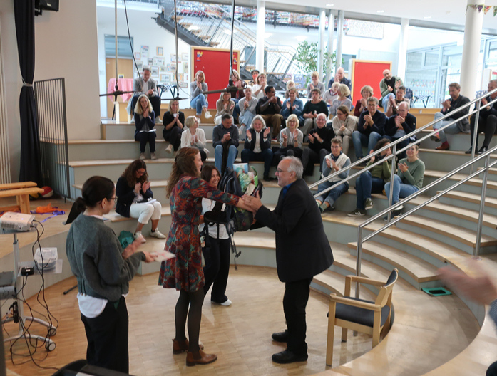 Vom Kollegium gab es dann zunächst einen großen Geschenke-Rucksack,...