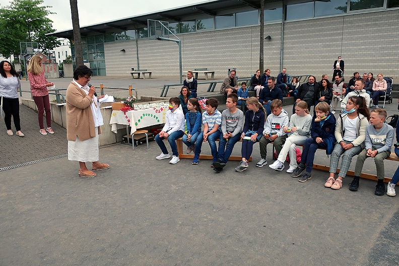 Wegen Corona hatte jede Klasse draußen eine eigene kleine Abschiedsfeier, immer begleitet von einer Aufführung einer dritten Klasse. Zum Glück spielte das Wetter mit , so dass jede Klasse seinen stimmungsvollen Abschluss bekam – wie die Fotos zeigen.