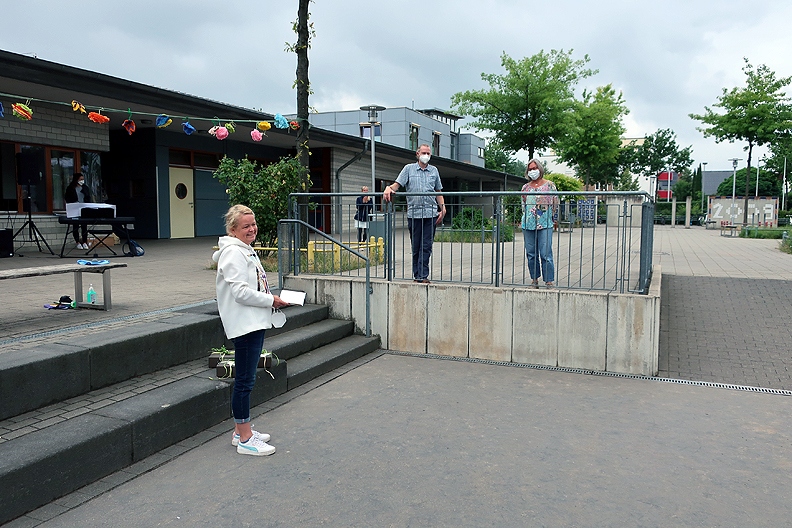 Wegen Corona hatte jede Klasse draußen eine eigene kleine Abschiedsfeier, immer begleitet von einer Aufführung einer dritten Klasse. Zum Glück spielte das Wetter mit , so dass jede Klasse seinen stimmungsvollen Abschluss bekam – wie die Fotos zeigen.