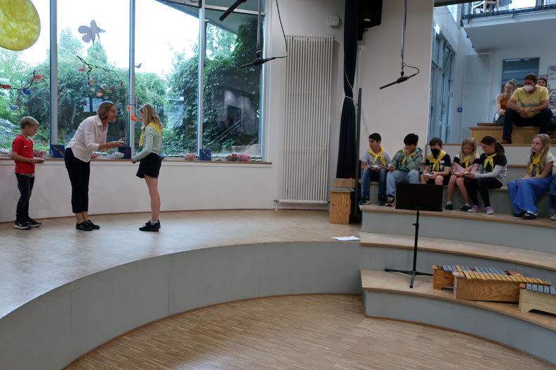 Alle Grundschul-Kinder freuen sich natürlich auf die wohlverdienten Ferien. Aber für die Viertklässler heißt das auch endgültig Abschied nehmen von der Grundschulzeit. Das haben wir würdig mit drei Abschlussfeiern gefeiert, die von den Klassen 3 vorbereitet wurden. Schön war es für die Eltern, dass sie auf diese Weise noch einmal eine Feier im Forum erleben durften.