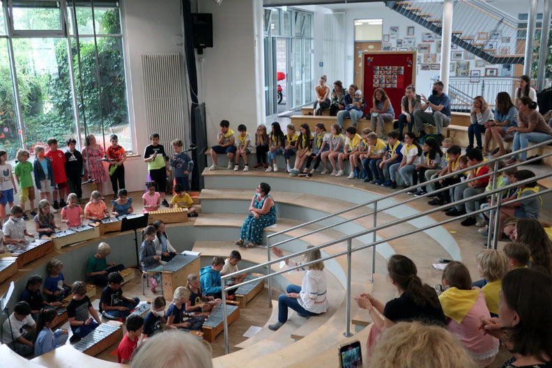 Alle Grundschul-Kinder freuen sich natürlich auf die wohlverdienten Ferien. Aber für die Viertklässler heißt das auch endgültig Abschied nehmen von der Grundschulzeit. Das haben wir würdig mit drei Abschlussfeiern gefeiert, die von den Klassen 3 vorbereitet wurden. Schön war es für die Eltern, dass sie auf diese Weise noch einmal eine Feier im Forum erleben durften.