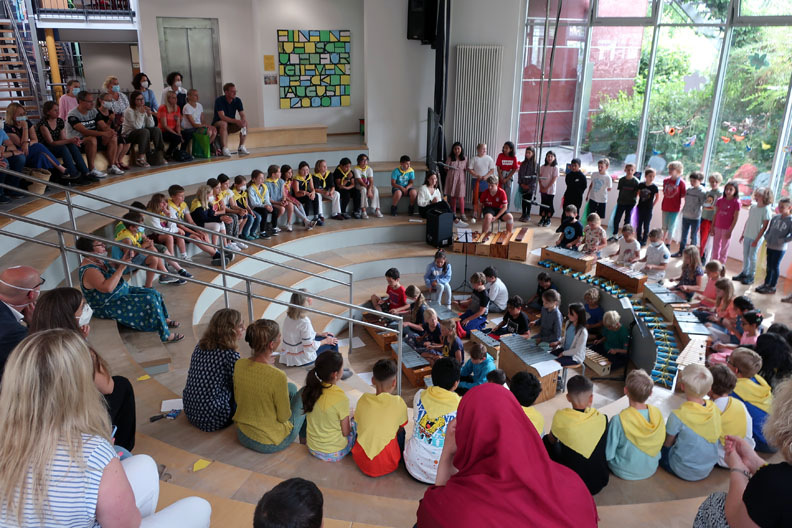 Alle Grundschul-Kinder freuen sich natürlich auf die wohlverdienten Ferien. Aber für die Viertklässler heißt das auch endgültig Abschied nehmen von der Grundschulzeit. Das haben wir würdig mit drei Abschlussfeiern gefeiert, die von den Klassen 3 vorbereitet wurden. Schön war es für die Eltern, dass sie auf diese Weise noch einmal eine Feier im Forum erleben durften.