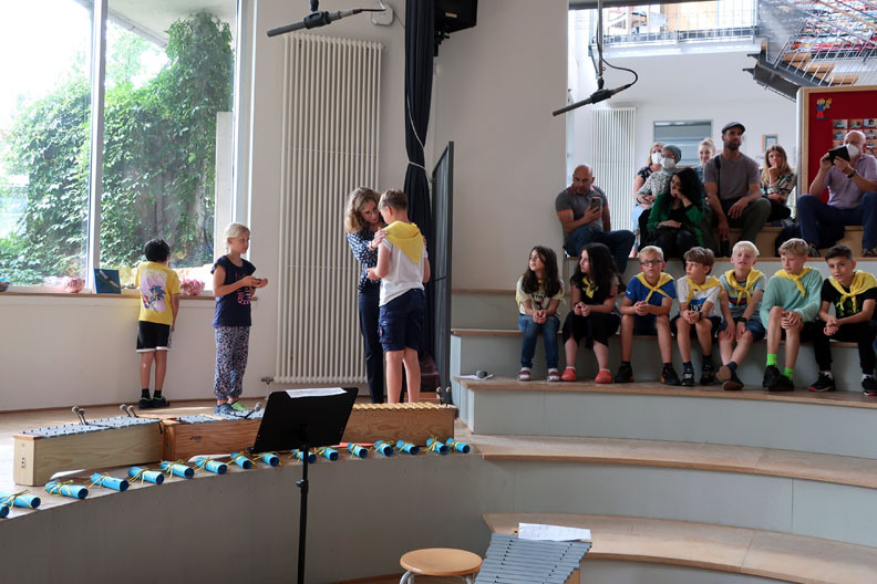 Alle Grundschul-Kinder freuen sich natürlich auf die wohlverdienten Ferien. Aber für die Viertklässler heißt das auch endgültig Abschied nehmen von der Grundschulzeit. Das haben wir würdig mit drei Abschlussfeiern gefeiert, die von den Klassen 3 vorbereitet wurden. Schön war es für die Eltern, dass sie auf diese Weise noch einmal eine Feier im Forum erleben durften.