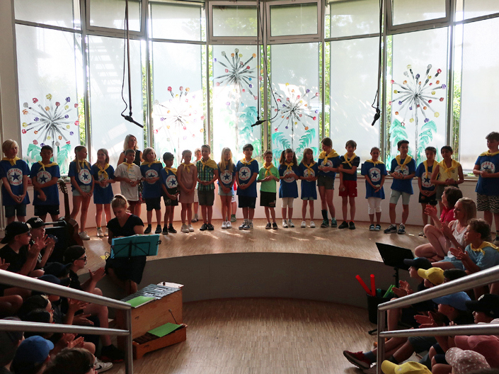 Endlich konnten wir aller zusammen wieder wie früher in unserem Forum Abschied von unseren Viertklässlern nehmen. Die Klassen 3 haben dafür ein tolles Programm auf die Beine gestellt – wie die Bilder unten zeigen. Ein großes Dankeschön dafür!