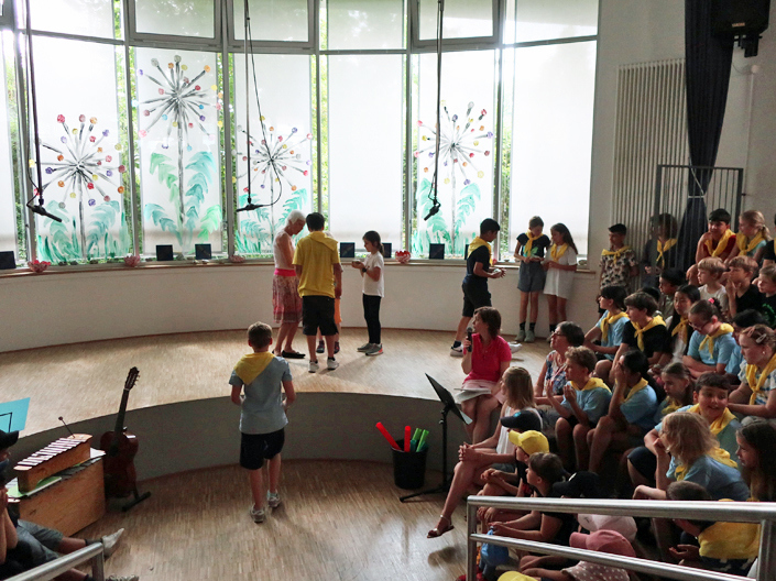 Endlich konnten wir aller zusammen wieder wie früher in unserem Forum Abschied von unseren Viertklässlern nehmen. Die Klassen 3 haben dafür ein tolles Programm auf die Beine gestellt – wie die Bilder unten zeigen. Ein großes Dankeschön dafür!