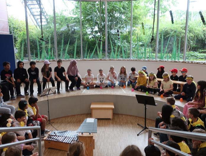 Zu Beginn brachte uns die Klasse 3 Brau mit Percussion ...