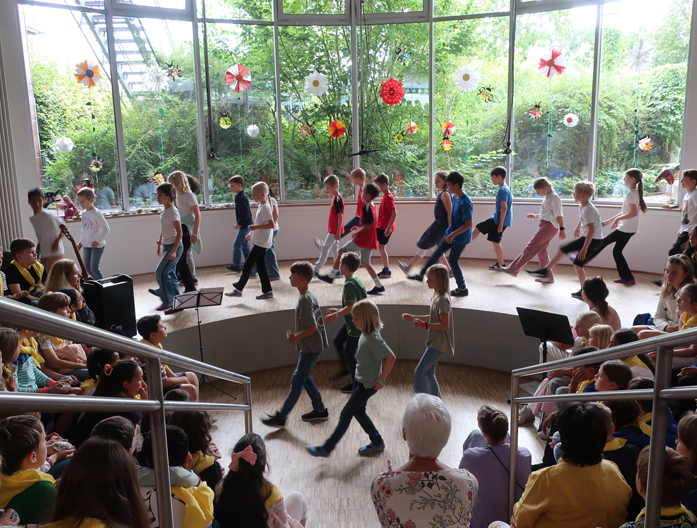 Am Schluss wurden die Viertis noch einmal von allen Drittklässlern zusammen mit dem Lied „Und wenn ihr geht“ verabschiedet.