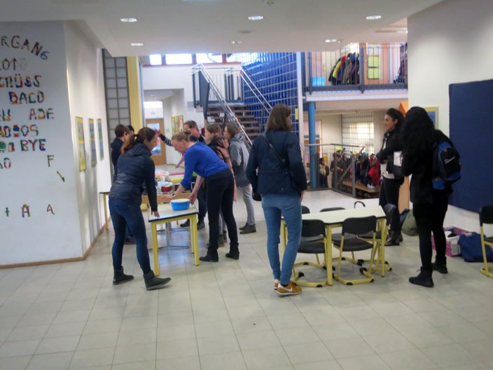 Andere Eltern bauen schon einmal die Waffel-Back-Stationen auf.