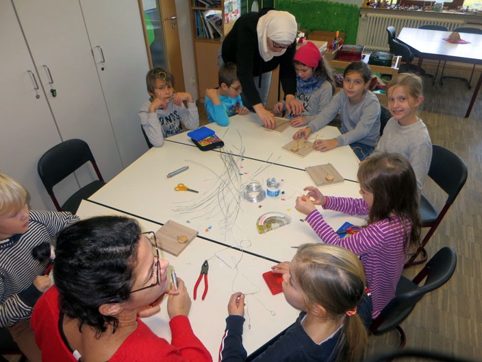 Freitag, der 29.11.19, war unser Adventsbasteltag, dieses Jahr zum Thema „Engel“. Also waren viele Eltern, Omas, Opas … gekommen, um den Kinder zu helfen, unsere Schule weihnachtlich zu schmücken. Außerdem haben sie leckeren Waffelteig mitgebracht, so dass die Kinder sich zwischendurch stärken konnten. Lecker!!!