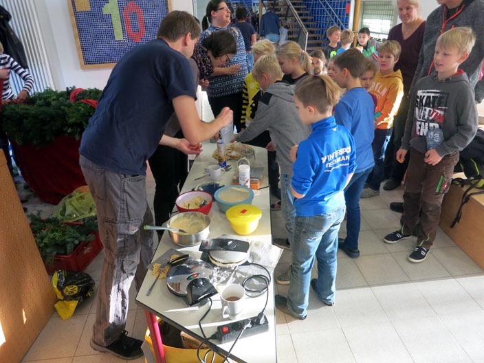 Freitag, der 29.11.19, war unser Adventsbasteltag, dieses Jahr zum Thema „Engel“. Also waren viele Eltern, Omas, Opas … gekommen, um den Kinder zu helfen, unsere Schule weihnachtlich zu schmücken. Außerdem haben sie leckeren Waffelteig mitgebracht, so dass die Kinder sich zwischendurch stärken konnten. Lecker!!!