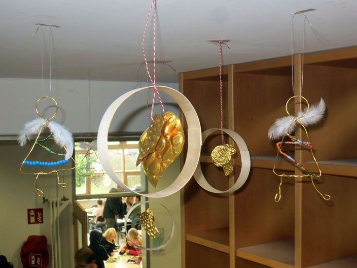 Freitag, der 29.11.19, war unser Adventsbasteltag, dieses Jahr zum Thema „Engel“. Also waren viele Eltern, Omas, Opas … gekommen, um den Kinder zu helfen, unsere Schule weihnachtlich zu schmücken. Außerdem haben sie leckeren Waffelteig mitgebracht, so dass die Kinder sich zwischendurch stärken konnten. Lecker!!!