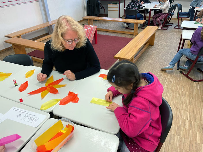 Ich war am Basteltag sehr fröhlich, denn ich war auch das erste Mal dabei. Wir haben Fenstersterne gebastelt und Karten geprickelt. Es war ein toller Tag.