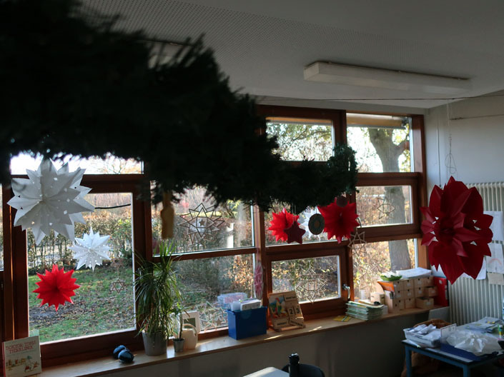 In der Woche vor dem 1. Advent haben die Kinder unsere Schule adventlich geschmückt mit vielen verschiedenen Basteleien (siehe ganz unten dazu die Bildergalerie). Dieses Jahr geht es um das Thema „Sterne“. Eine entsprechende Einstimmung wird es dazu auch im Forum geben, am Freitag (25.11.) die  Klassen 1 und 3 und am Montag (28.11.) die Kinder der Klassen 2 und 4.