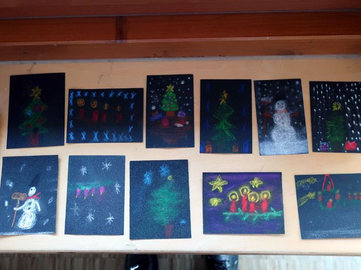 Ich war am Basteltag sehr fröhlich, denn ich war auch das erste Mal dabei. Wir haben Fenstersterne gebastelt und Karten geprickelt. Es war ein toller Tag.