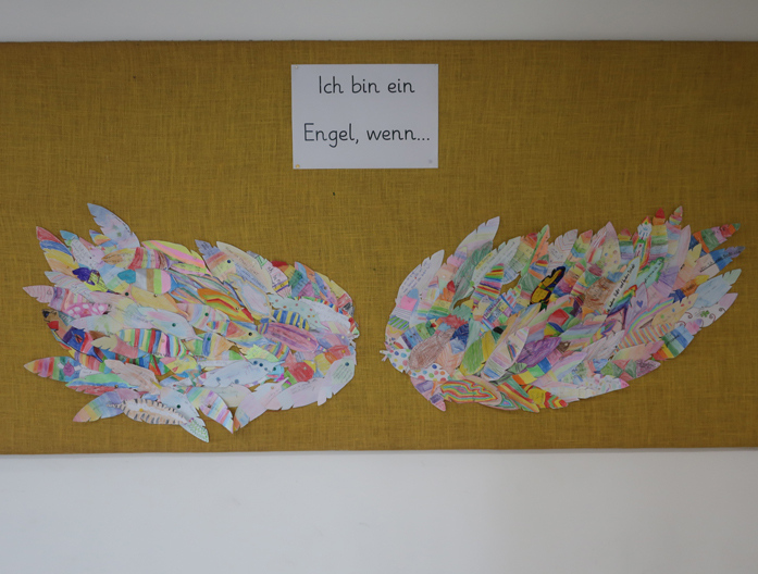 Unter großer Mithilfe der Eltern gestalten wir die Schule adventlich um. Dieses Jahr am 29.11.24 unter dem Motto „Ich kann ein Engel sein“. Ein besonderer Ansporn sind die Waffeln, die uns Eltern zwischendurch gebacken haben.