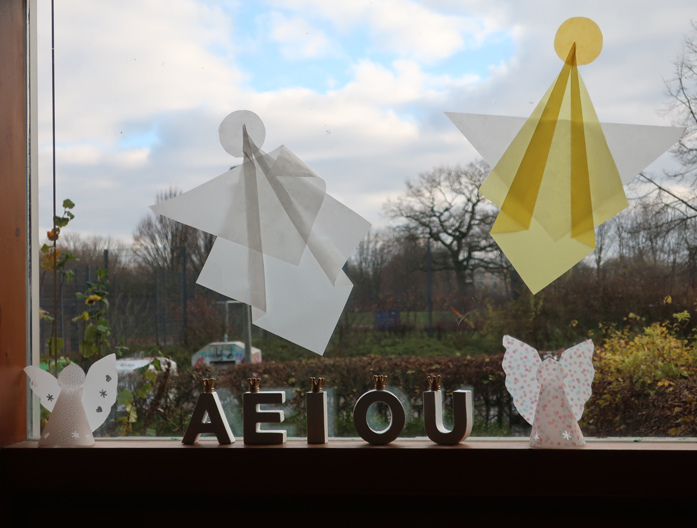 Unter großer Mithilfe der Eltern gestalten wir die Schule adventlich um. Dieses Jahr am 29.11.24 unter dem Motto „Ich kann ein Engel sein“. Ein besonderer Ansporn sind die Waffeln, die uns Eltern zwischendurch gebacken haben.