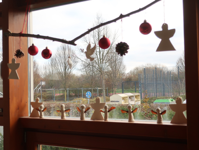 Unter großer Mithilfe der Eltern gestalten wir die Schule adventlich um. Dieses Jahr am 29.11.24 unter dem Motto „Ich kann ein Engel sein“. Ein besonderer Ansporn sind die Waffeln, die uns Eltern zwischendurch gebacken haben.