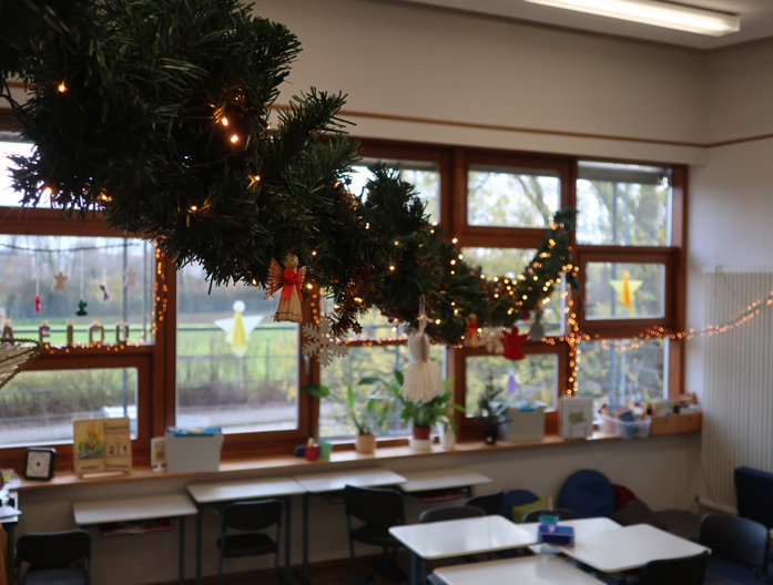 Unter großer Mithilfe der Eltern gestalten wir die Schule adventlich um. Dieses Jahr am 29.11.24 unter dem Motto „Ich kann ein Engel sein“. Ein besonderer Ansporn sind die Waffeln, die uns Eltern zwischendurch gebacken haben.