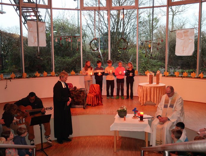 Am Donnerstag, den 12.12.24, trafen wir uns in der ersten Stunde im Forum, um gemeinsam mit den Pfarrern Koeniger und Sühling einen ökumenischen Gottesdienst zu feiern. Rund um das Thema Engel hatten Lehrerinnen diesen zusammen mit Kindern der Klasse 4 Wie vorbereitet. Ein sehr schöner und besinnlicher Einstieg in den Tag, auch für die Eltern, die dafür zu Besuch gekommen waren. Danke dafür an alle Beteiligten!