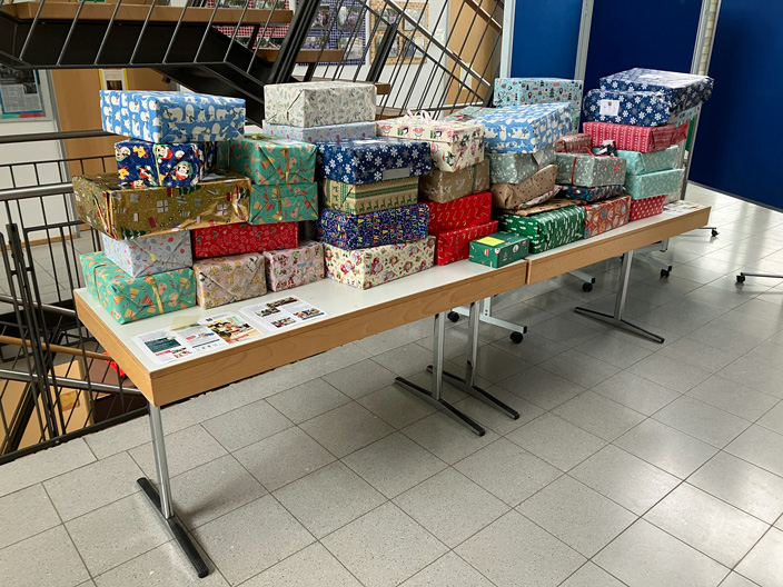 Im November 2024 hat die Mosaik-Schule erstmalig an der Aktion „Weihnachtspäckchen-Konvoi“ teilgenommen, und wie man sieht haben die Mosaikler sich toll daran beteiligt. Wer Näheres wissen möchte: https://weihnachtspaeckchenkonvoi.de