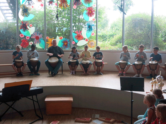 Kein Wunder, denn die beiden Trommel-Werkstätten von Herrn Simon hatten ihre Aufführung und spielten für uns Trommel-Rhythmen aus Ghana und Guinea.