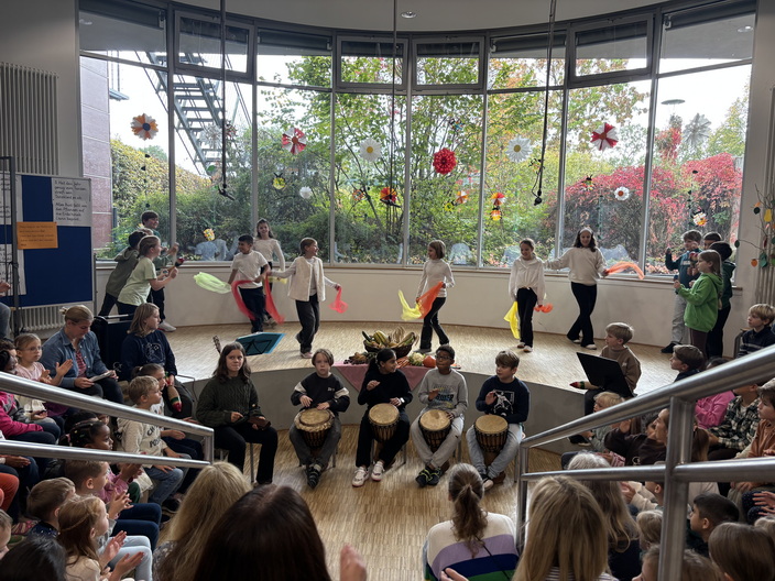 In diesem Jahr wurde das traditionelle Herbstfest wieder von den Klassen 1 und 4 gestaltet. Nach einem gemeinsamen Frühstück in den Klassen traf sich die ganze Schulgemeinde im Forum. Gemeinsam sorgten die Kinder für...
