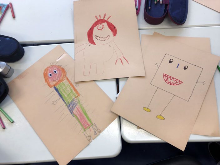 Bis einschließlich Donnerstag können sich die Kinder jeden Morgen ein Leseprojekt aussuchen. Daran arbeiten sie dann zwei Schulstunden, dieses Jahr immer in der 3. und 4. Stunde. Und dort wird nicht nur gelesen, sondern immer anschließend auch etwas gemacht, z.B. ein Stabpuppenspiel, Bewegungsstationen in der Turnhalle, Bilder malen, Texte weiterschreiben, Verkleidungen erproben, Traumgläser erstellen …..