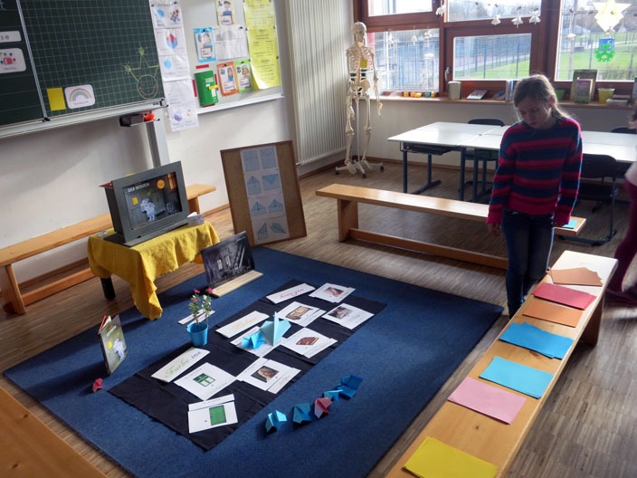 Bis einschließlich Donnerstag können sich die Kinder jeden Morgen ein Leseprojekt aussuchen. Daran arbeiten sie dann zwei Schulstunden, dieses Jahr immer in der 3. und 4. Stunde. Und dort wird nicht nur gelesen, sondern immer anschließend auch etwas gemacht, z.B. ein Stabpuppenspiel, Bewegungsstationen in der Turnhalle, Bilder malen, Texte weiterschreiben, Verkleidungen erproben, Traumgläser erstellen …..