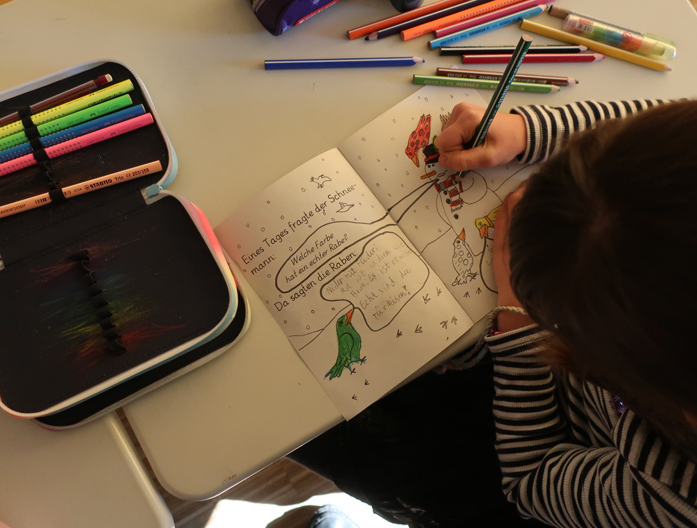 Montag bis Donnerstag finden vorher die Leseprojekte immer in der 3. und 4. Stunde in den Räumen der Schule statt. Jeden Tag können sich die Kinder ein neues, kleines Leseprojekt aussuchen. Das vielfältige Programm hat den Mosaik-‚Lese-Ratten‘ viel Freude bereitet.
