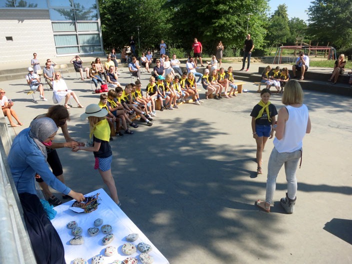 Am Freitag, den 26.06.2020, konnten und durften wir unsere Viertklässler zum Glück richtig verabschieden. Wer hätte das vor einigen Wochen noch gedacht. Einige Neuerungen brachte diese Corona-Abschiedsfeier aber mit sich: Wir haben draußen gefeiert, nacheinander immer eine vierte Klasse und natürlich mit einer besonderen Corona-Abstands-Sitzordnung für die Eltern. Toll war, dass die Drittklässler in den knapp zwei Wochen ein fetziges Abschiedslied für die Feier eingeübt haben und zudem Erinnerungs-Freundschaftsbändchen gebastelt haben. Danke dafür! Wir sind glücklich, dass wir so den Viertklässlern doch noch einen würdigen und verdienten Abschluss gestalten konnten.