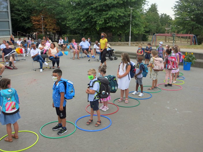 Am 13.08. und 14.08.2020 fand die Einschulung auf unserem Schulhof statt, wegen Corona getrennt nach Klassen.