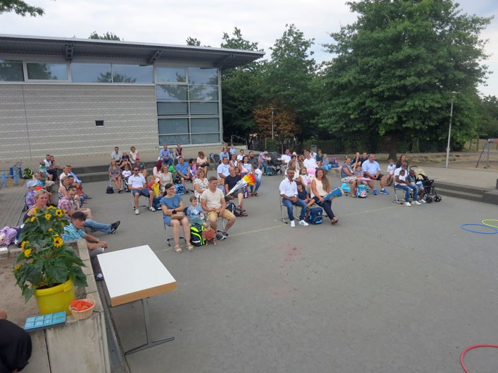 Am 13.08. und 14.08.2020 fand die Einschulung auf unserem Schulhof statt, wegen Corona getrennt nach Klassen.