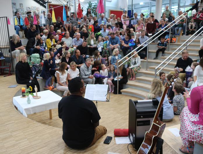 Für alle, die wollten, startete der Einschulungstag mit einem ökumenischen Gottesdienst, zusammen mit Pfarrerin Jürgens.