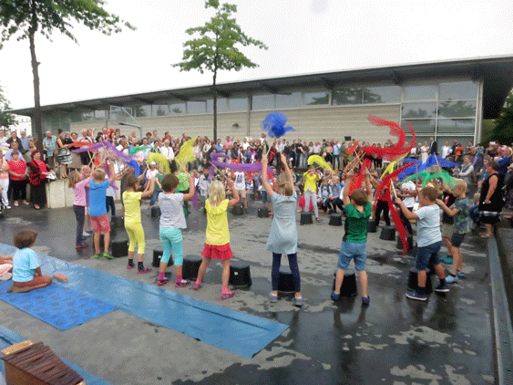 So haben wir zuerst im Forum einen ökumenischen Einschulungs-Gottesdienst gefeiert, um danach draußen auf dem Schulhof unser Einschulungsfeier zu begehen, die die zweiten Klassen vorbereitet haben.