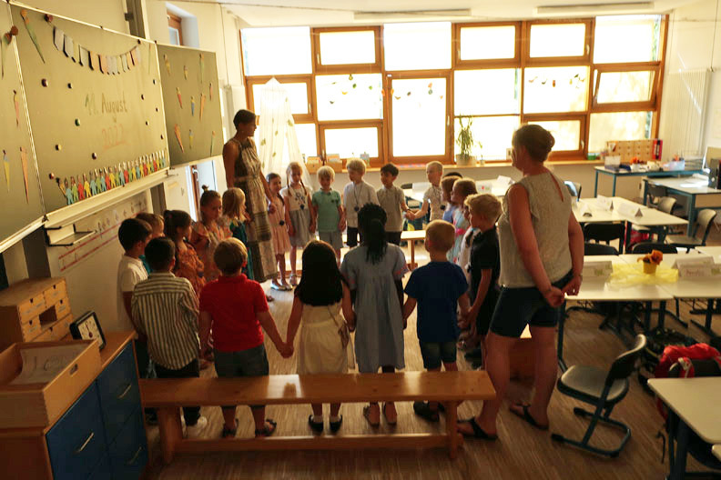 Die erste Schulstunde endet in der 1 Zim mit einem Abschiedslied ...