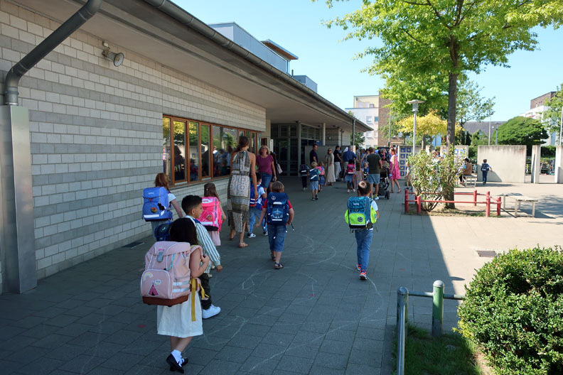 Am Donnerstag, den 11.08.22, haben wir drei neue Klassen 1 eingeschult. Passend zum Einschulungstag bekamen die ‚Erstis‘ am Eingang zur Begrüßung ein vierblättriges Kleeblatt von ihren Klassenlehrerinnen umgehängt.
