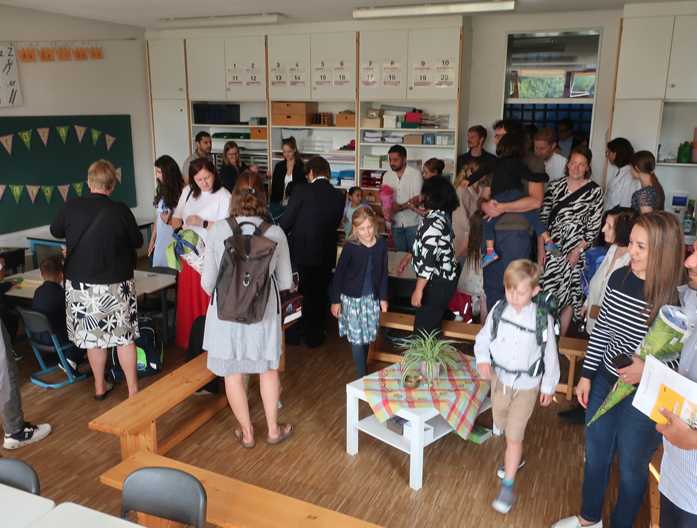 Gestartet wurde mit einem ökumenischen Gottesdienst. Danach fand die Einschulungsfeier statt. Dafür haben die Kinder der alten Klassen 1 vor den Ferien geprobt und hatten jetzt nur noch einen Tag Zeit für die Generalprobe. Und die Kinder haben das toll gemacht.