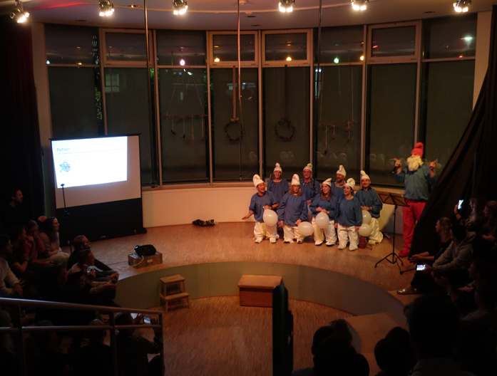 Um 19:30 versammelten sich über 100 Eltern plus Lehrkräfte und MitarbeiterInnen der Mosaik-Schule im Forum. Einige Eltern aus jeder Klasse 2 bis 4 hatten wieder über Wochen tolle Stücke geprobt, um sie nun in einer mitreißenden Vorstellung nacheinander vorzuführen. Wie einfallsreich die Eltern dabei waren zeigt die Fotogalerie. Ganz großen Dank für dieses kreative Engagement. Und anschließend ging es zum Abrocken und Weiterfeiern ins Fachwerk.