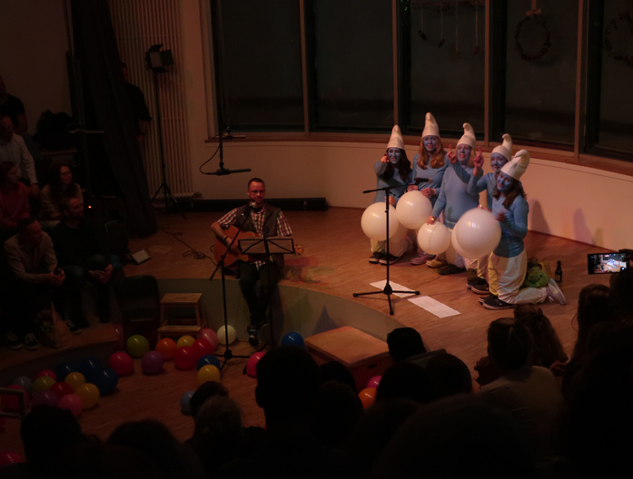 Um 19:30 versammelten sich über 100 Eltern plus Lehrkräfte und MitarbeiterInnen der Mosaik-Schule im Forum. Einige Eltern aus jeder Klasse 2 bis 4 hatten wieder über Wochen tolle Stücke geprobt, um sie nun in einer mitreißenden Vorstellung nacheinander vorzuführen. Wie einfallsreich die Eltern dabei waren zeigt die Fotogalerie. Ganz großen Dank für dieses kreative Engagement. Und anschließend ging es zum Abrocken und Weiterfeiern ins Fachwerk.