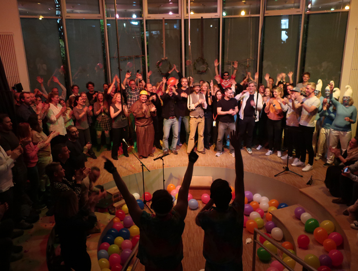 Um 19:30 versammelten sich über 100 Eltern plus Lehrkräfte und MitarbeiterInnen der Mosaik-Schule im Forum. Einige Eltern aus jeder Klasse 2 bis 4 hatten wieder über Wochen tolle Stücke geprobt, um sie nun in einer mitreißenden Vorstellung nacheinander vorzuführen. Wie einfallsreich die Eltern dabei waren zeigt die Fotogalerie. Ganz großen Dank für dieses kreative Engagement. Und anschließend ging es zum Abrocken und Weiterfeiern ins Fachwerk.