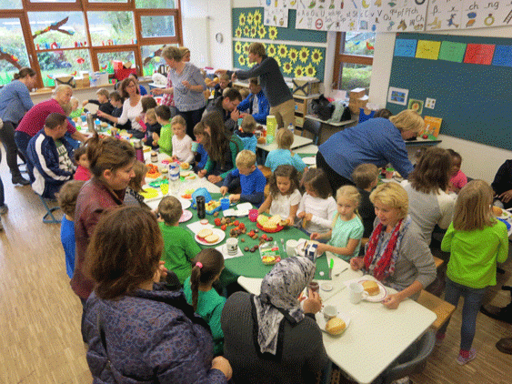 Das beginnt bereits in der großen Pause. Dann bereiten Eltern ein Ernte-Dank-Frühstück in den Klassen vor, auf welches sich die hungrigen Mosaik-Kinder danach besonders freuen. Dankeschön für diesen Einsatz!