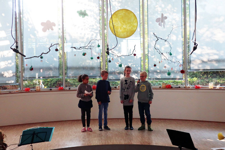 Ein Gebet passend zum Erntedank tragen Kinder der Klasse 3 Ar vor ...