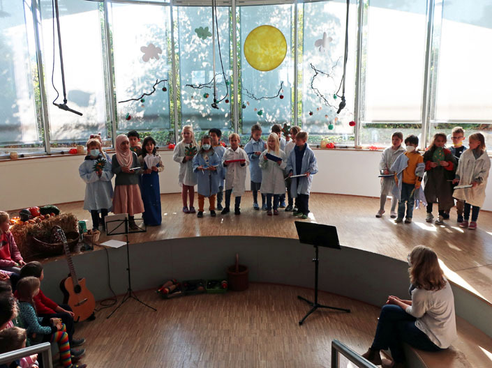 Bei der zweite Feier beginnen - nach einführenden Worten der Klasse 4 Weß - die Kinder der Klasse 2 Ams ....