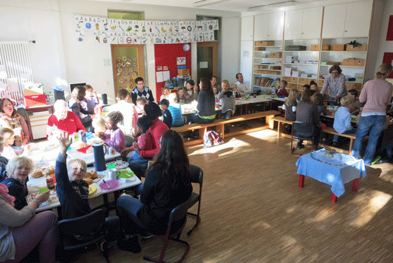 Der letzte Tag vor den Herbstferien fiel dieses Jahr auf Freitag, den 2.10.2015, und das ist jedes Jahr zugleich der Tag für unser Erntedank-Fest. Nach einem gemeinsamen Erntedank-Frühstück mit Eltern in den Klassen feierten alle zusammen im Forum.