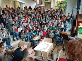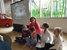 Der Gedicht-Vortrag der Kinder wirkte besonders dadurch, dass ein Kind passend dazu Sandbilder malte – beeindruckend. Und herzlichen Dank dafür, auch den Eltern, die dabei unterstützt haben!