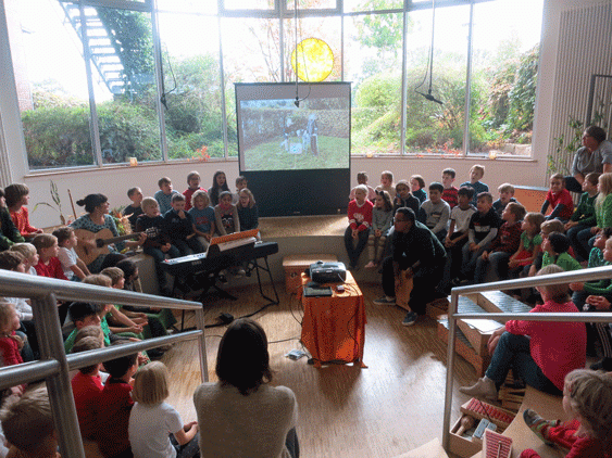Gerade die Erstklässler waren besonders aufgeregt, da sie dafür zum ersten Mal zusammen mit den Viertklässlern auf der Bühne im Forum standen. Und das vorweg: Sie haben es toll gemacht wie die Fotos unten zeigen.