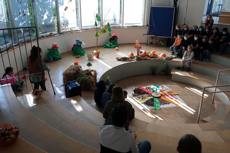 Dafür hatten die Kinder wie früher passende Herbst-Beiträge vorbereitet: Gedichte, Texte, Lieder, Raps, Tänze oder Theaterstücke. Und endlich konnten die Kinder wieder dieses tolle Gefühl des großen Applauses im Forum erleben – die Kinder des ersten Schuljahres und im Grunde auch des zweiten Schuljahres zum ersten Mal.